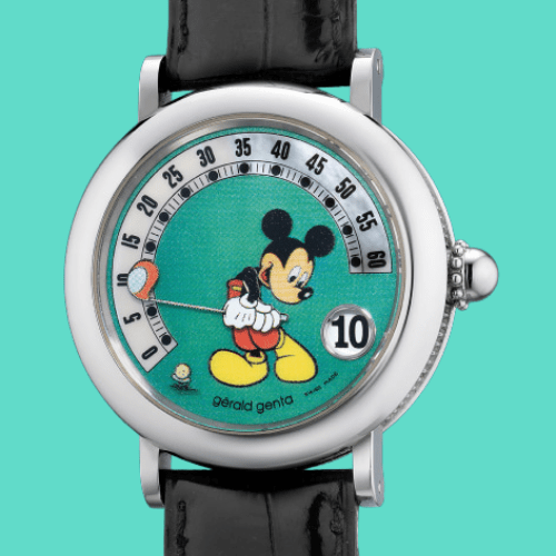 Gerald Genta, ce designer visionnaire, a tout osé ! Celui à qui l’on doit les 2 modèles les plus désirables du marché, Royal Oak et Nautilus, signe une licence avec Walt Disney dans les années 1980. Il développe, sous la marque éponyme, Fantasy, une collection avec complications heures sautantes et minutes rétrogrades.
