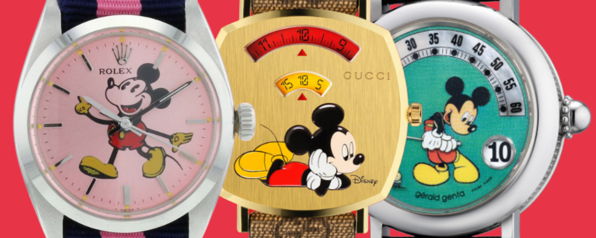 Gucci est certainement la marque de luxe qui a le plus exploité l’image de Mickey. En 2020, à l’occasion du nouvel an chinois, la maison italienne signe sa 3ème collaboration avec Walt Disney pour célébrer l’année de la souris. Passionné d’antiquité, le designer à qui l’on doit le renouveau de la marque, revisite l’esthétique des montres à guichet des années 30.