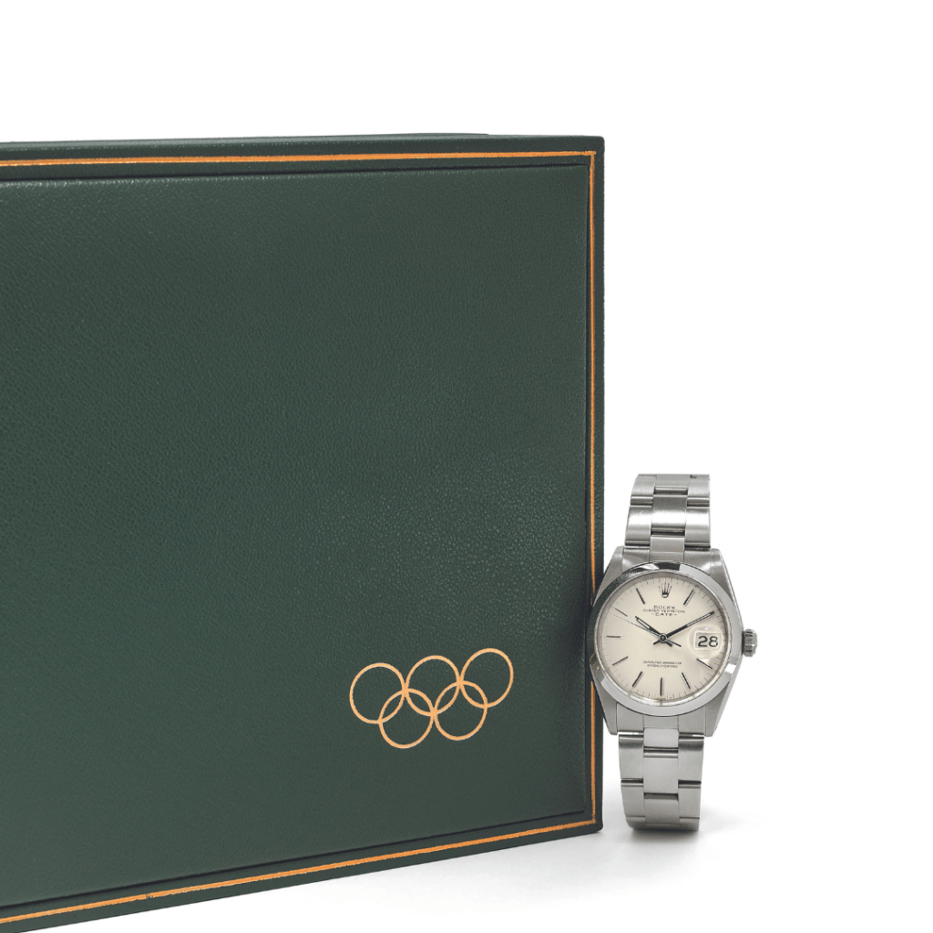 Conservée par sa famille, sa montre est présentée pour la première fois en vente publique. Accompagné d’archives personnelles et de photographies d’époques, ce coffret Rolex est un rare témoignage de l’implication de Rolex face à la dimension politique très émotionnelle qu’avaient suscité les épreuves olympiques de 1968.