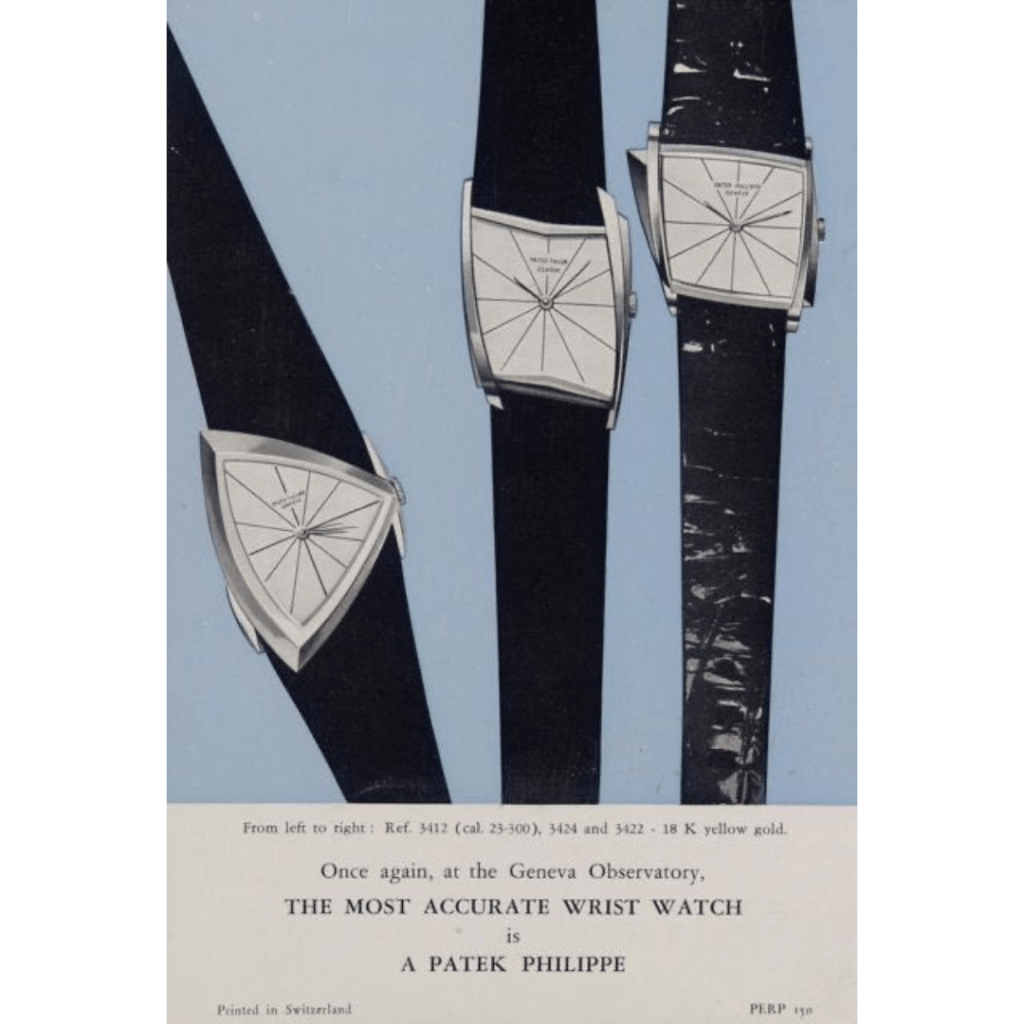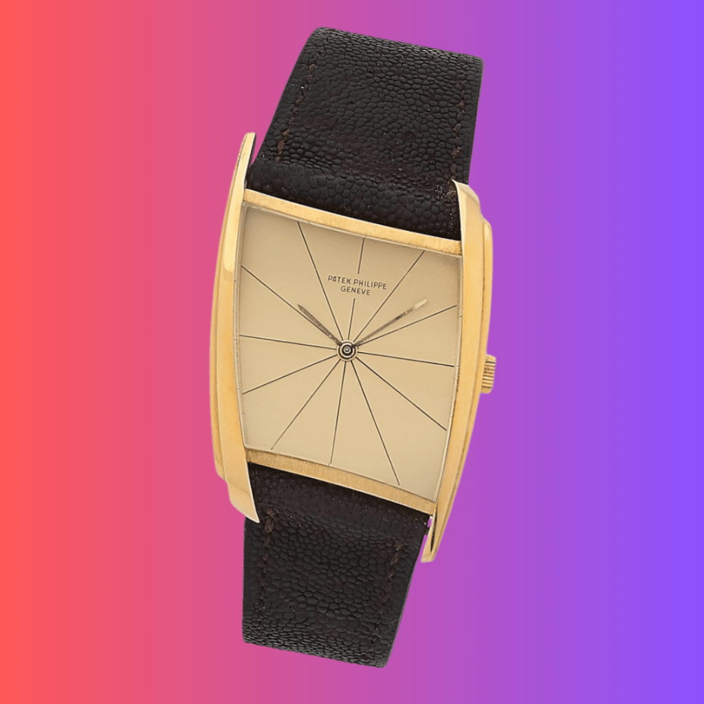 La référence 3424 est l’une des pièces les plus « fun » de l’univers Patek Philippe. Introduite en 1959, cette montre fut imaginée par le talentueux Gilbert Albert, qui fut designer pour la manufacture genevoise dès 1955 et jusqu’en 1962, année où il décida de se consacrer exclusivement à la joaillerie. Produit en or jaune, blanc, rose et en platine, ce modèle fut manufacturé en petite série. S’il est difficile de donner un nombre exact, la production aurait été inférieure à moins de 300 exemplaires. Cette rareté a un prix, et d’après les derniers résultats de vente aux enchères, il se situe entre 65 000 et 175 000€, tout dépend de l’état et du métal précieux, les modèles en or rose étant par exemple beaucoup plus rares que ceux en or jaune.