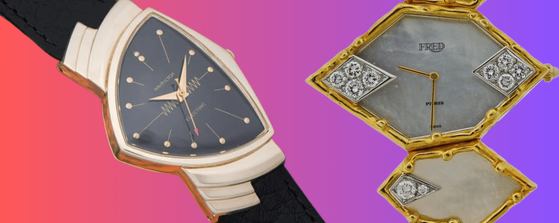 Chaque époque est marquée par une mode, une tendance, un style. Si les années 1950 signent le come-back des montres rondes, les sixties amènent une extravagance inédite dans l’industrie horlogère. Et, de Patek Philippe à Lip, les montres asymétriques font leur apparition dans les collections des manufactures les plus en vogue. Ces garde-temps, appelés aussi « montres de forme », sont aujourd’hui de vrais collectors stylistiques !