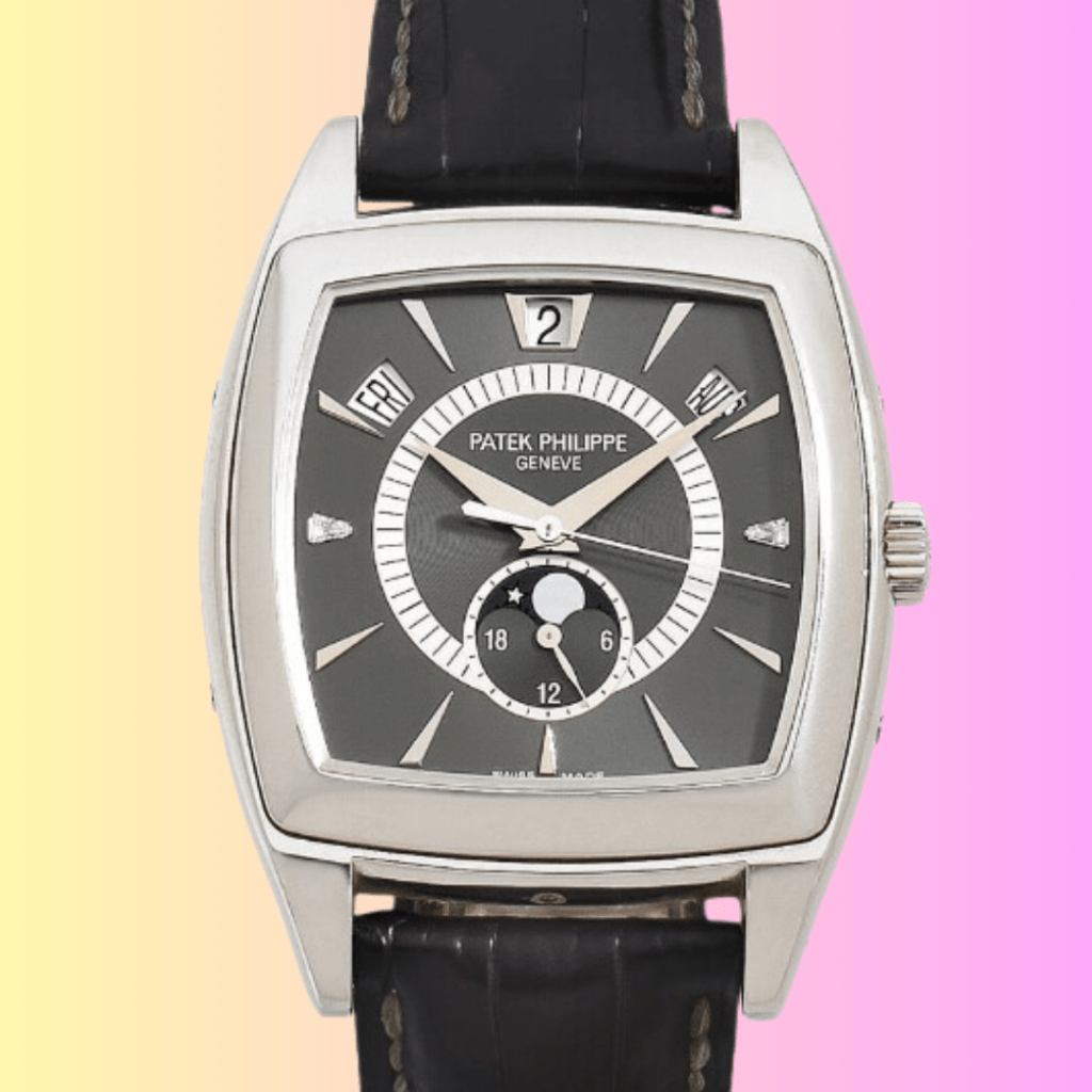 Manufacturée uniquement entre 2004 et 2010, la référence 5135P est un collector en puissance encore relativement accessible aujourd’hui. Celle montre, aussi surnommée « Gondolo Calendario », est le premier calendrier annuel avec passage automatique de la date, du mois et du jour, une seule correction manuelle par an (le 1er mars) est nécessaire. Avec son boîtier tonneau et ses 2 index diamants appliqués, le design de cette montre est inspiré des modèles manufacturés par la marque durant la période Art Déco. Vendu 32 950€, ce résultat est à la hauteur des performances enregistrées récemment par Christie’s (The Geneva Edit, mai 2022) et Phillips (The Hong Kong Watch Auction, novembre 2021) pour des pièces similaires.