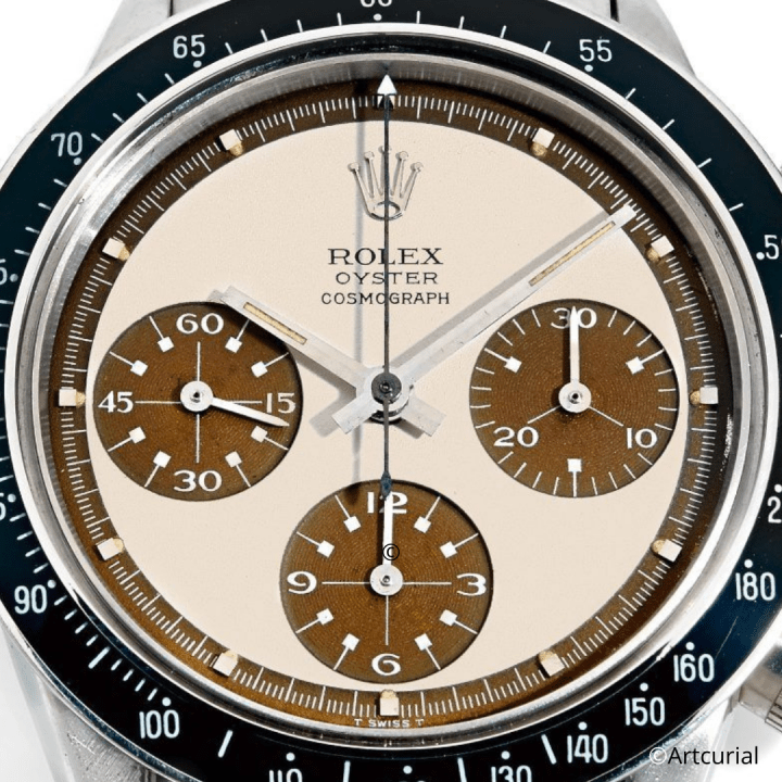 Le 9 décembre prochain, la maison Aguttes présentera une Rolex dont le cadran laissera les connaisseurs sans voix. Parfaitement homogène, la coloration « Dark Chocolate » de ce cadran « Paul Newman » en fait un spécimen vintage sensationnel. Confié par la fille du propriétaire d’origine, ce Daytona est une pièce rare dans l’univers des montres de collection pour trois raisons. Si la première est indiscutablement sa patine, la deuxième est sa référence : le modèle 6262 fut produit durant à peine deux années, de 1970 à 1971, ce qui en fait une référence de transition extrêmement attractive. La troisième est son cadran « Paul Newman » tricolore avec la fameuse mention « T Swiss T » sur le rehaut à 6h. La combinaison « 6262 / Paul Newman » est aujourd’hui incontestablement la plus recherchée par les amateurs de la marque. Présenté avec une estimation de 80 000 / 120 000€ et accompagné d’une garantie de service de 2005 de la maison Rolex, cette pièce culte est l’une des plus belles montres de la vente.