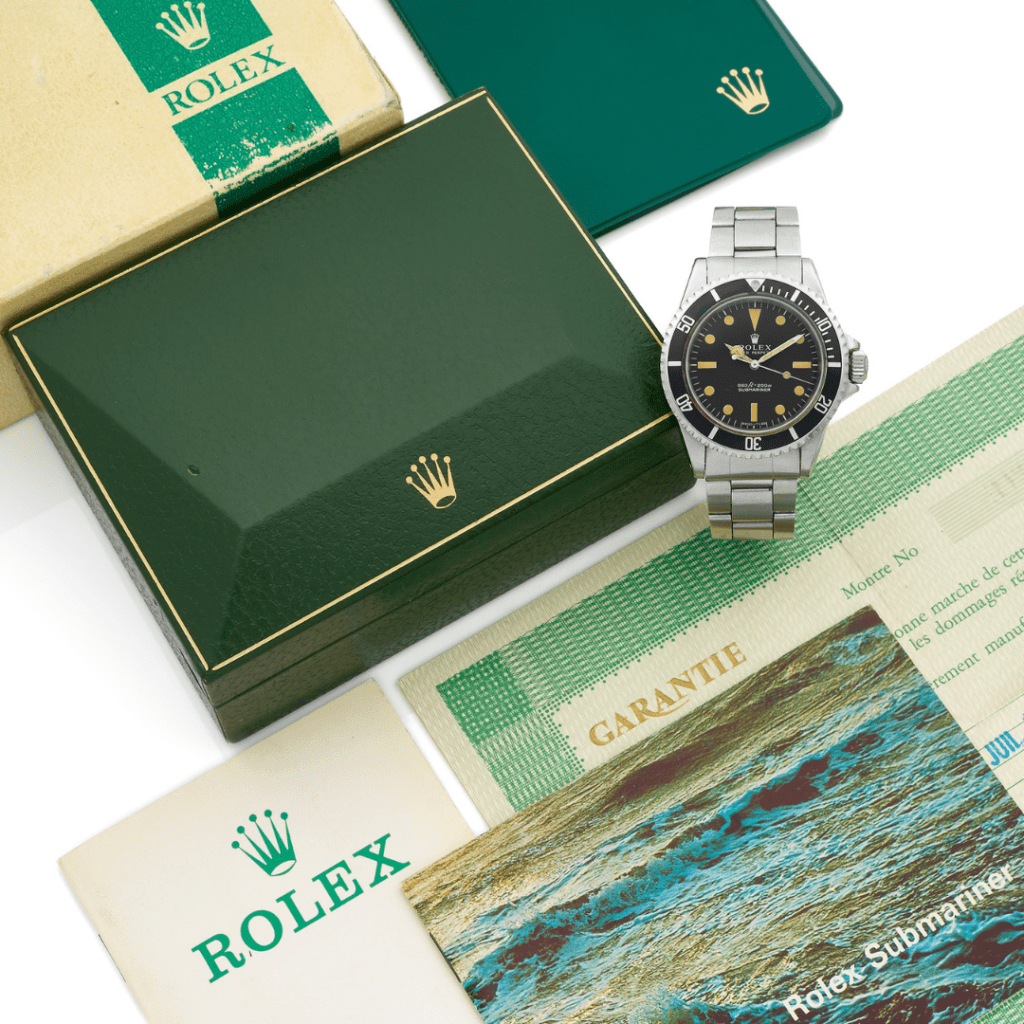 Elle est accompagnée de sa garantie d’origine punchée et tamponnée par le joaillier parisien Fred en date du 1ᵉʳ juillet 1974. Revendeur officiel Rolex depuis les années 1960, Fred aurait donc peut-être joué un rôle clef dans la livraison de cette série de Submariner 5513 aux forces armées grecques ? Depuis 1974, quelques rares exemplaires de cette série sont réapparus depuis sur le marché, dont le plus récent fut celui vendu par Phillips en mai 2022 à Genève. Estimée 30 000 / 60 000€ et finalement vendue 47 880 CHF, la Submariner 5513 adjugée par Aurel Bacs était accompagnée d’un document officiel du 13ᵉ commandement des opérations spéciales, une unité d’élite rassemblant des nageurs de combats, confirmant que cette Submariner était une montre de dotation.