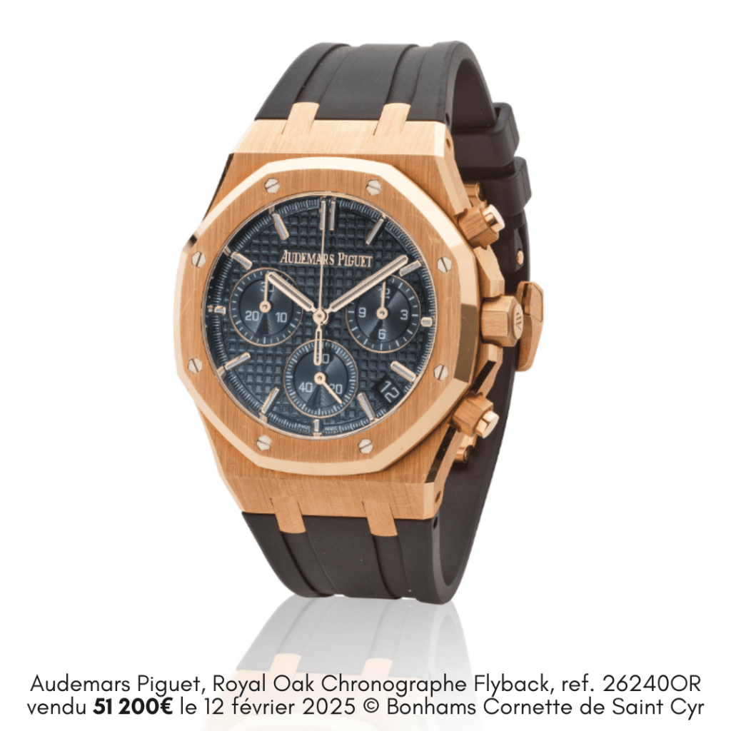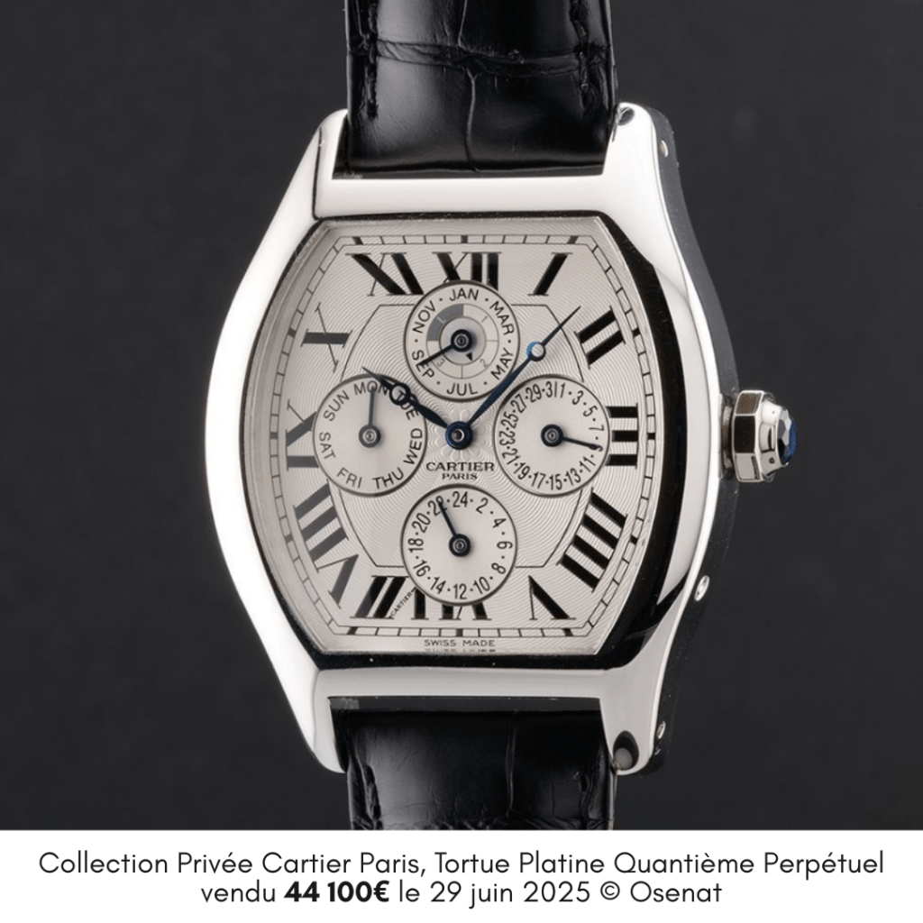 Dirigé par le spécialiste Hugo Page, le département organise 8 ventes aux enchères chaque année ! Un rythme effréné qui a permis depuis janvier dernier à cette maison française installée à Paris, Fontainebleau et Versailles, de vendre plus de 600 montres pour un résultat de 1,8 million d’euros ! Si en 2024, c’est sur un modèle Richard Mille RM035 qu’Osenat a décroché son plus beau résultat (114 660€), c’est sur le segment des montres de 20 000 à 50 000€ que la maison tire son épingle du jeu en 2025 : Rolex Sea-Dweller de 1981 vendue 23 940€, Cartier Tortue Quantième Perpétuel en platine de la très chic Collection Privée Cartier Paris vendue 44 100€ ou Audemars Piguet Royal Oak ref. 15450ST vendue 34 020€. Pour Hugo Page, ce premier semestre 2025 démontre qu’après « un début 2024 compliqué, le marché est désormais en croissance, comparable à celui de 2018 ». C’est d’ailleurs Osenat qui inaugurera les enchères de la seconde partie de l’année avec une vente programmée le 19 septembre prochain !