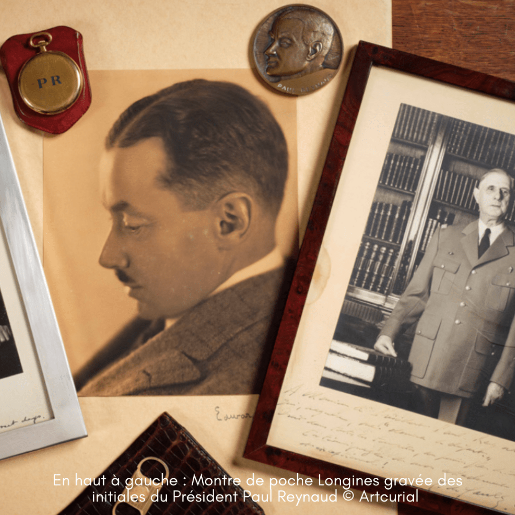 Cette fois-ci, ce ne sont pas les montres ayant appartenu au Général de Gaulle qui seront présentées aux enchères, mais celles de l’homme qui l’appela à ses côtés et le nomma sous-secrétaire d’État à la Défense nationale, à la Guerre et à la défense nationale : Paul Reynaud. Cette personnalité politique française, que le philosophe et historien Paul Aron qualifiait comme « le plus intelligent de nos hommes politiques de l’entre-deux-guerres » fut Président du Conseil et ministre des Affaires étrangères de mars à mai 1940. Entre 1934 et 1966, année de sa disparition, Paul Reynaud entretient une correspondance riche avec le Général de Gaulle, dont il partageait les convictions sur le plan stratégique militaire. 70 de ces lettres seront d’ailleurs mises aux enchères en même temps que ses montres !