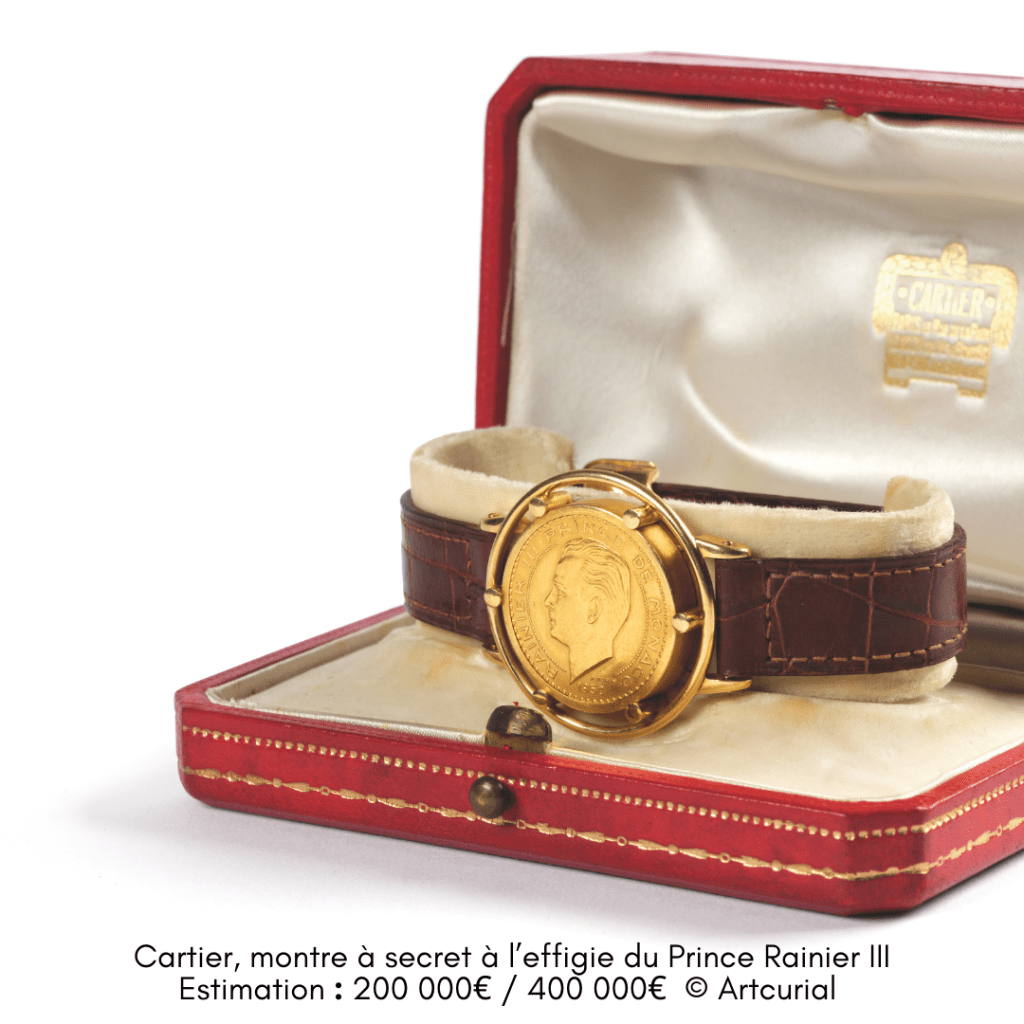 La principauté de Monaco sera également en vedette grâce à la dispersion de 3 montres ayant appartenu à Pierre Rey. Conseiller privé du Prince Rainier II, administrateur des biens de la principauté et ancien président de la Société des Bains de Mer, Pierre Rey fut l’un des artisans de la modernisation de Monaco dans les années 1950. Discret, mais influent, il joua un rôle clé dans la transformation économique et culturelle du Rocher.