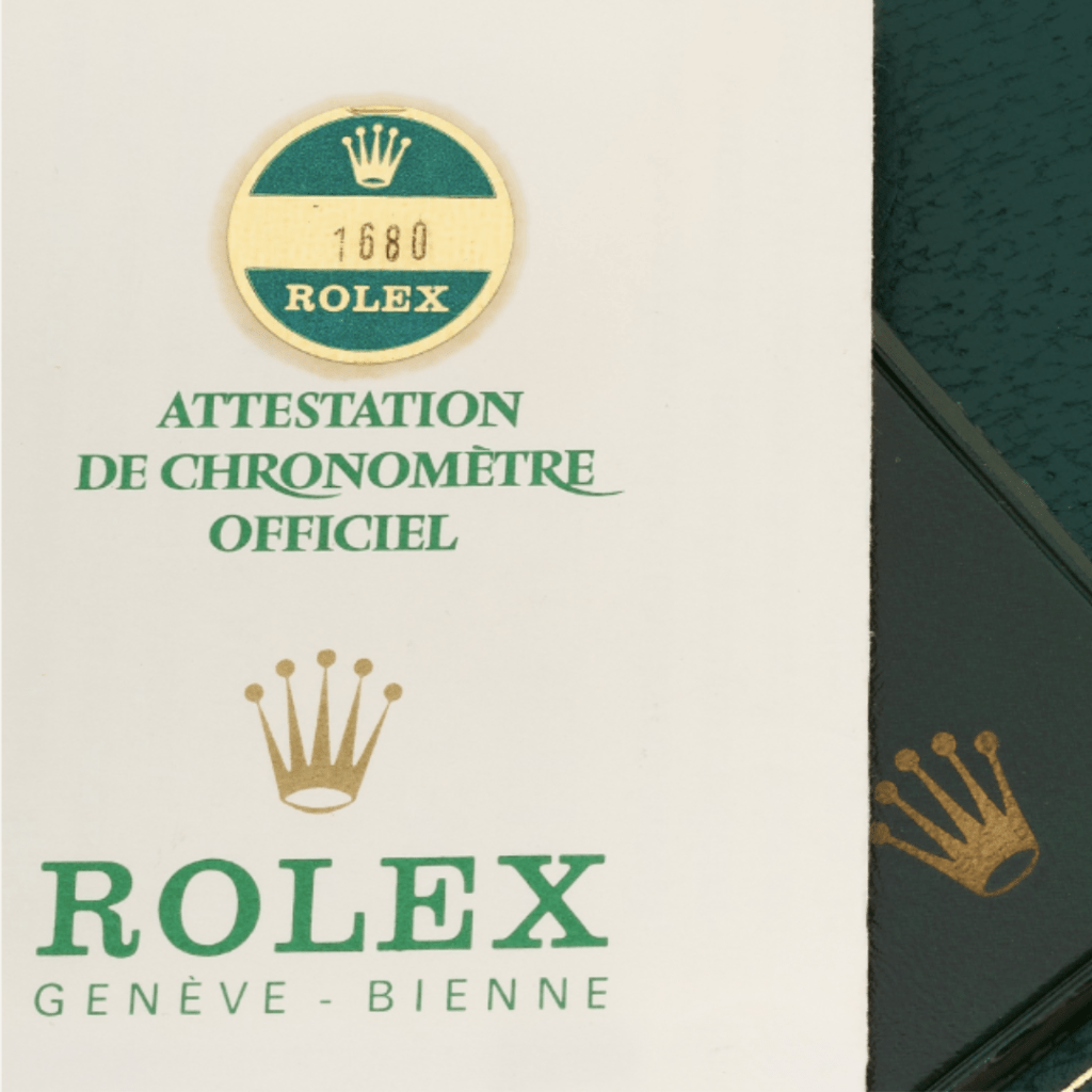 Accompagné de sa garantie d’origine « punchée » ainsi que de l’ensemble de ses accessoires, dont le calendrier Rolex 1979/1980, cet exemplaire figure parmi les toutes dernières Submariner 1680 livrées à la Comex.