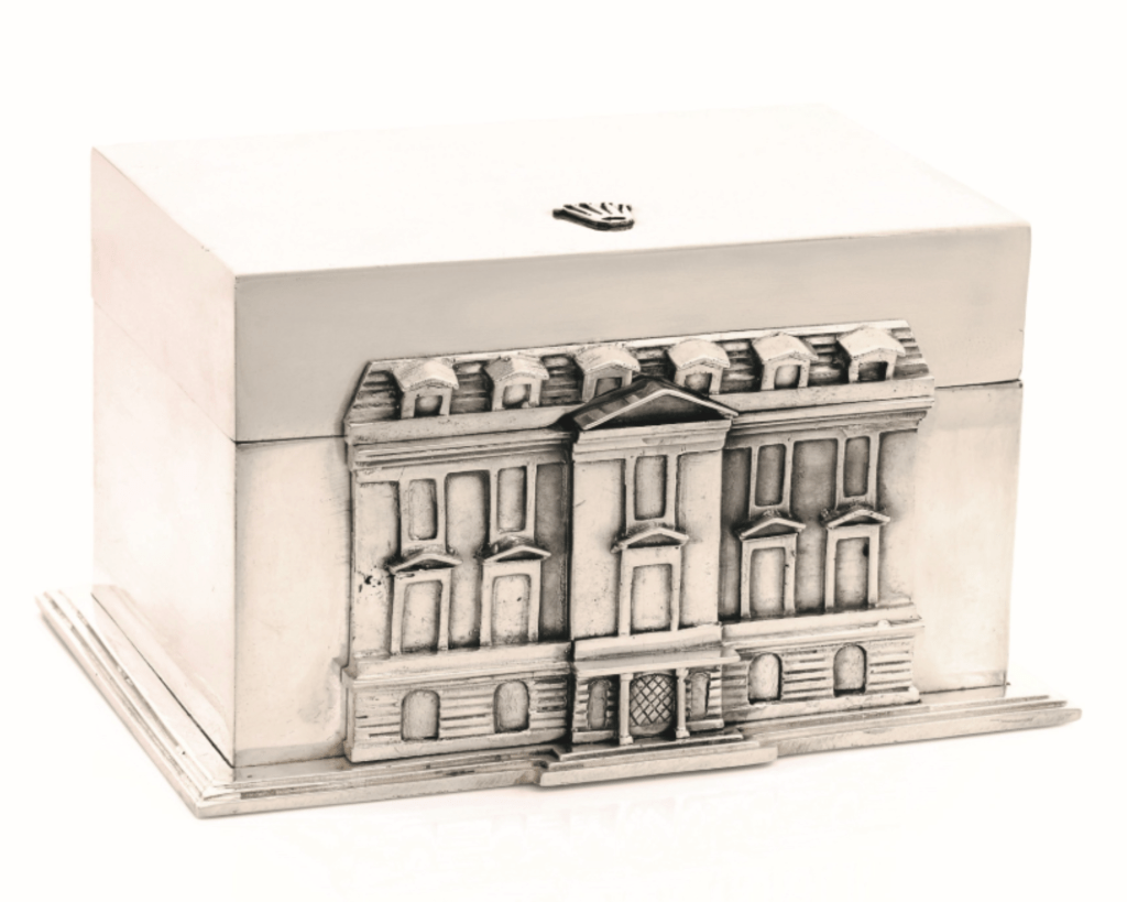 Réalisée dans les années 1980, cette élégante boîte en argent (925) reproduit l’hôtel particulier de Rolex France, situé 3 avenue Ruysdaël à Paris, adresse emblématique de la maison dans la capitale.