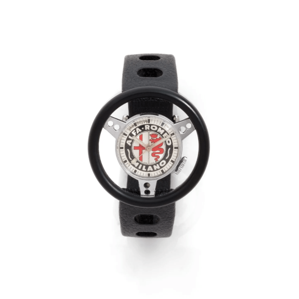 C’est la pièce la plus accessible de la vente : mise à prix à 100€. Cette montre promotionnelle, produite pour la marque italienne Alfa Romeo, est équipée d’un mouvement mécanique et est accompagnée de son bracelet Tropic d’époque.