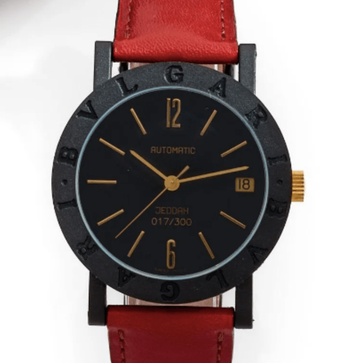 Au cours des années 1990, Bulgari lance Carbon Gold, une collection expérimentale intégrant un matériau encore inédit dans l’horlogerie de luxe : le carbone. La maison Aguttes propose ici deux pièces issues d’une série spéciale Carbon Gold « Jeddah », éditée à seulement 300 exemplaires.
