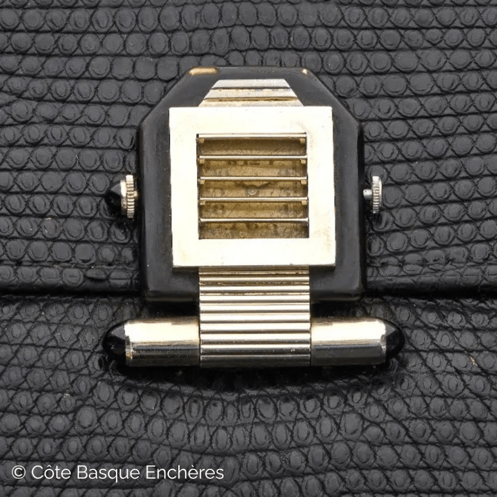 Redécouverte et parfaitement valorisée par la maison Côte Basque Enchères, cette montre, vendue 3 720 € le 14 mars dernier (lot 729), ornait une pochette de soirée en lézard.